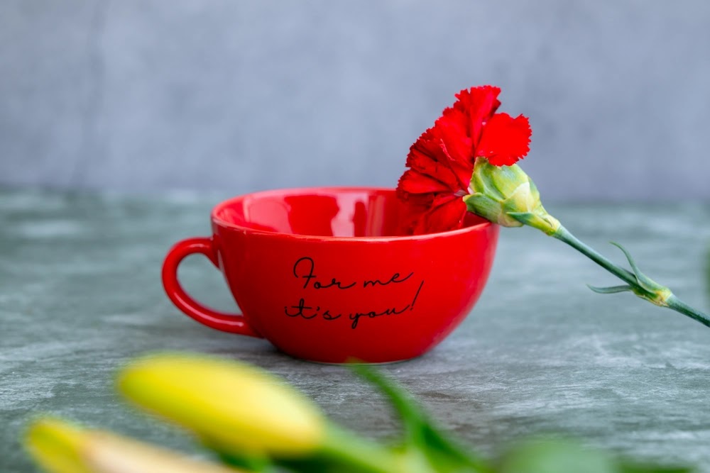 โค๏ธ Red Ceramic Mug โ Features the romantic quote โFor me, itโs youโ
