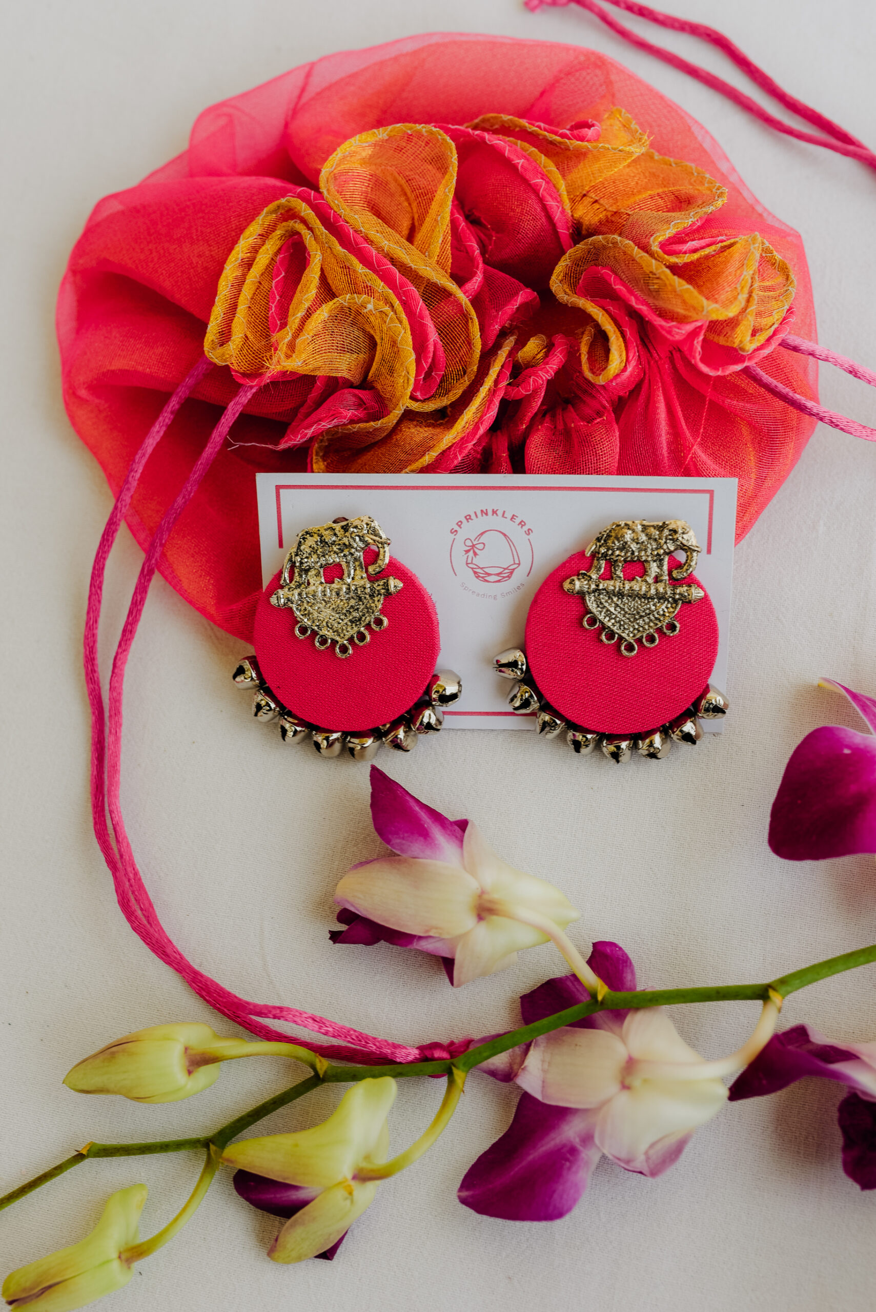 Earrings – Bold and beautiful in hot pink with golden detailing, these earrings add a pop of tradition and modern flair.